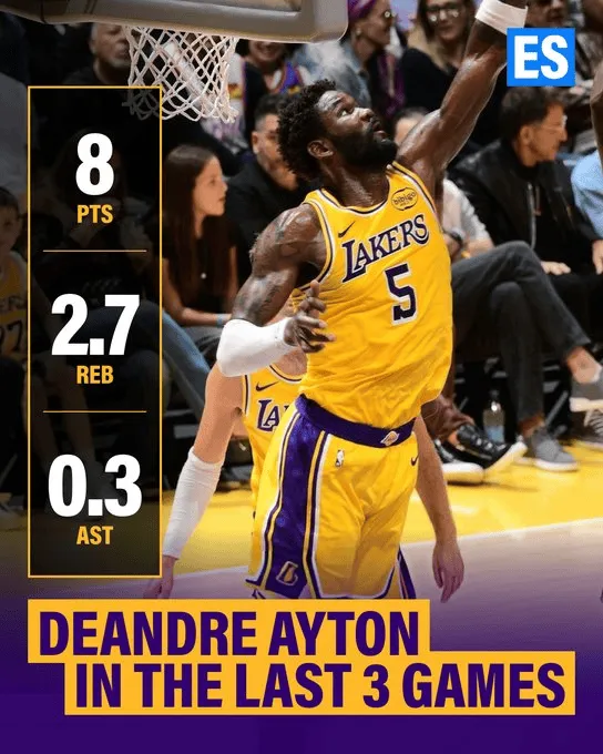 湖人球员艾顿全场4中1得到3分3篮板,近3场比赛场均8分2.7篮板0.3助攻,投篮命中率50%。